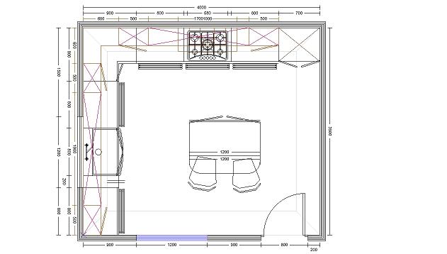 Notice that the cut line slices through all units e.g. the sink to the right of the image.