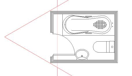 In the above example the cut line has been moved too far forward so that the camera extends to either side of the plan. This results in a section of sky either side of the image.