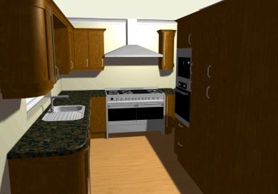 The default light has been moved (infront of the hob) and a second point source added (infront of the arch at the bottom of the design). Both lights have had their intensity set to 60%.